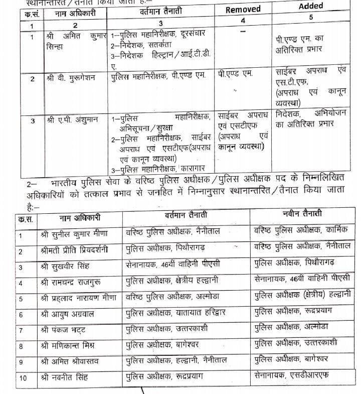 उत्तराखंड में एक दर्जन से भी अधिक आईपीएस अधिकारियों के तबादले