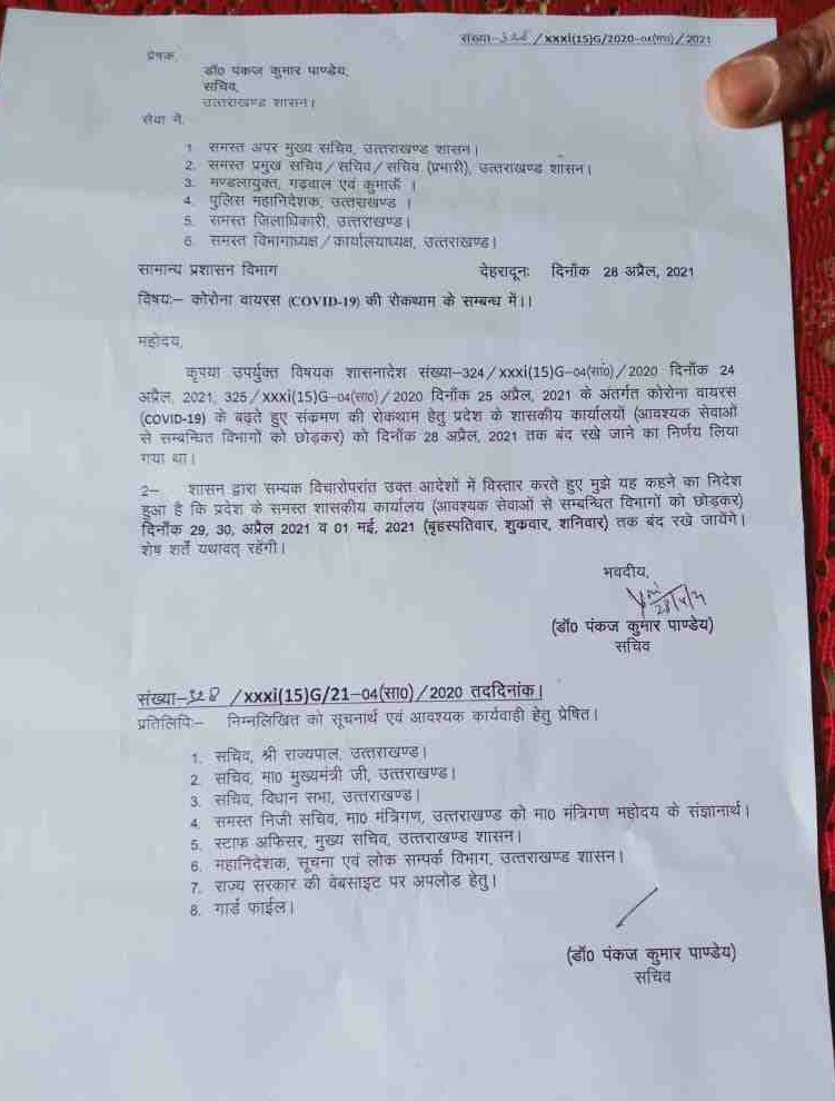 उत्तराखंड में कोरोना के लगातार बढ़ता संक्रमण,सरकारी कार्यालय 1 मई तक बंद