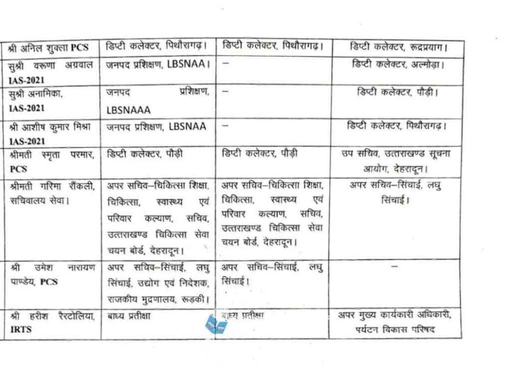 उत्तराखंड में 11 आईएएस और 12 पीसीएस अफसरों के कार्यक्षेत्र में बदलाव