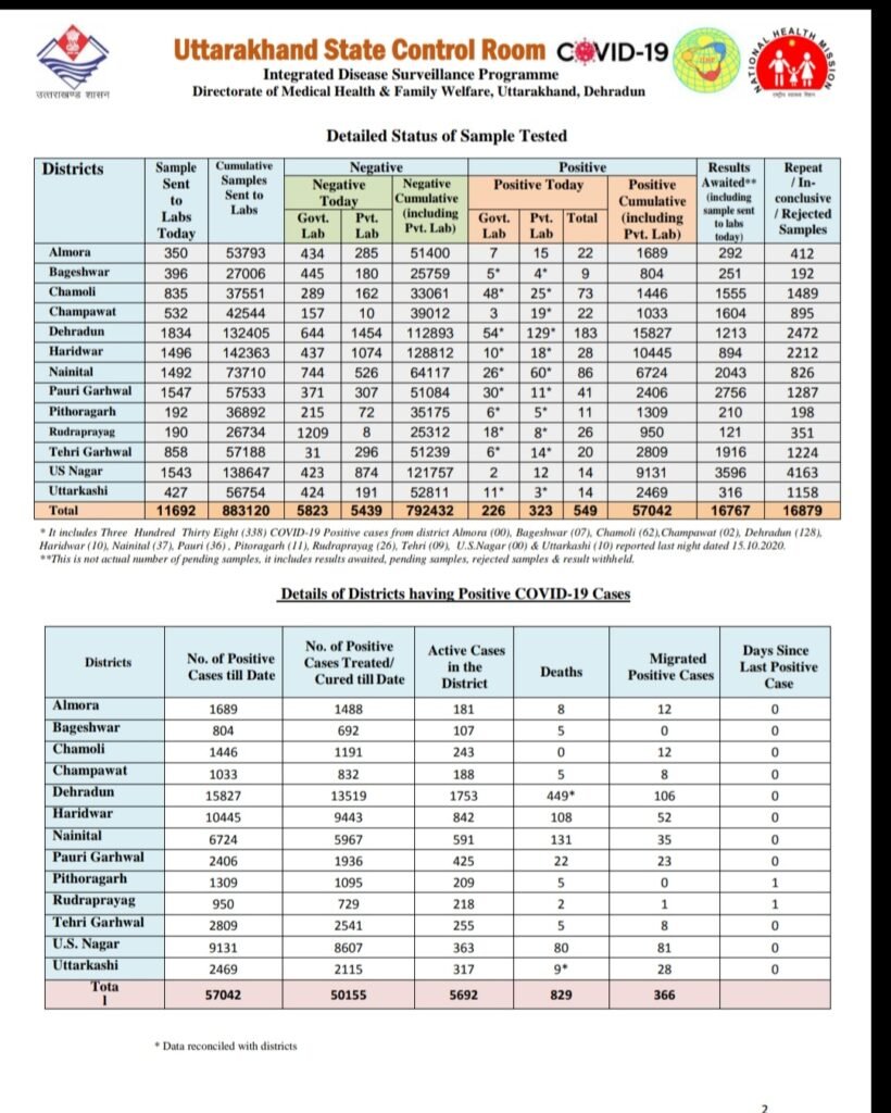 देहरादून। देश में वैश्विक महामारी कोरोना वायरस रुकने का नाम नहीं ले रही है वहीं उत्तराखंड भी इससे अछूता नहीं है उत्तराखंड में आज भी 549 नए मामले कोरोना संक्रमितों के आए हैं ।