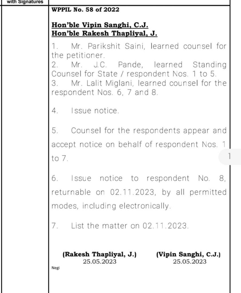 हरिद्वार/ नैनीताल। अपने गृह जनपद में तैनात पीसीएस अधिकारी नूपुर वर्मा से संबंधित याचिका पर शुक्रवार को उत्तराखंड उच्च न्यायालय में मुख्य न्यायाधीश की अध्यक्षता वाली खंडपीठ में सुनवाई हुई। मामले की गंभीरता को देखते हुए मुख्य न्यायधीश विपिन सांघी की अध्यक्षता वाली खंडपीठ ने राज्य सरकार से इस संबंध में जवाब मांगा है। नूपुर वर्मा के गृह जनपद संबंधी दस्तावेजो के संबंध में 3 सप्ताह में नोटिस इशू कर जवाब मांगा गया है।