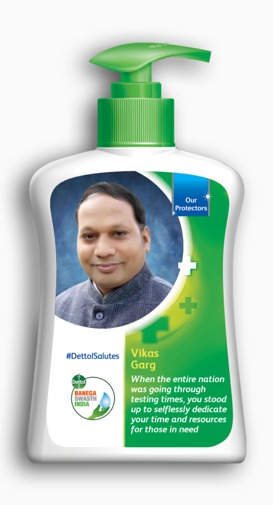 वरिष्ठ समाजसेवी विकास गर्ग की तस्वीर Dettol ने लगाई अपने प्रोडक्ट पर